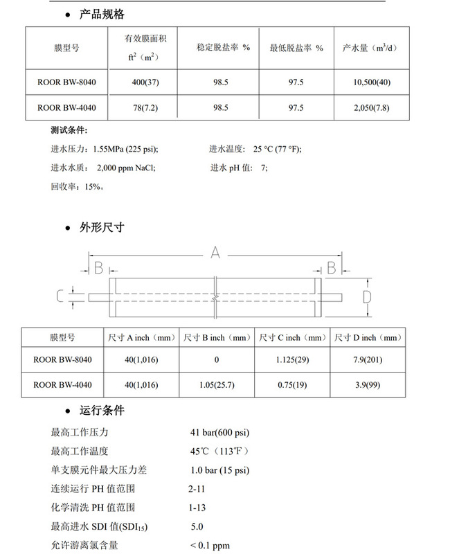 - Specification: BW-4040 Universal 4-inch High-Pressure Membrane