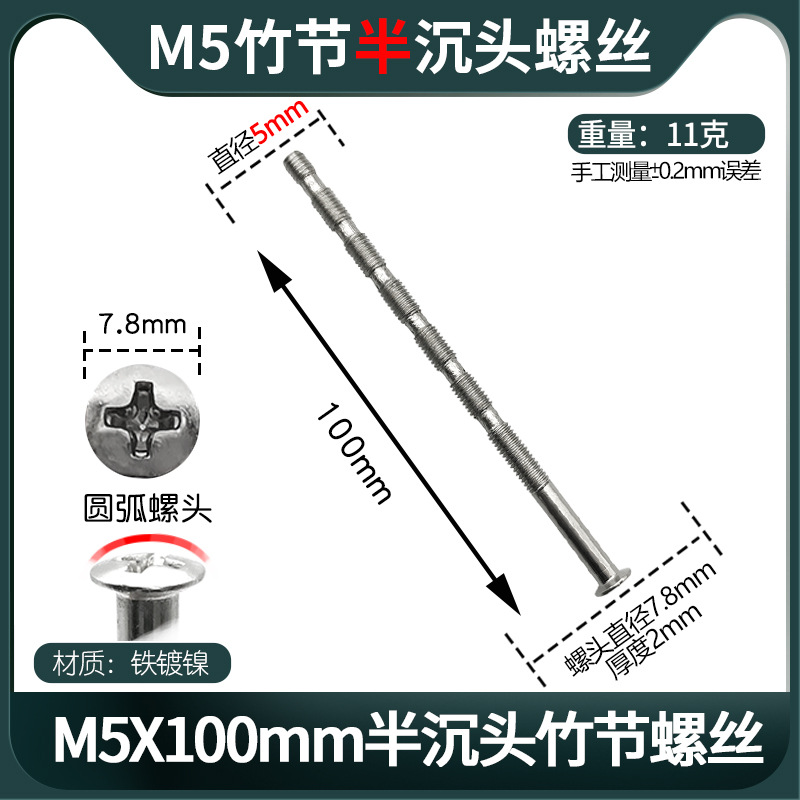 - Specification: M5X100 Semi-Countersunk Bamboo节螺丝