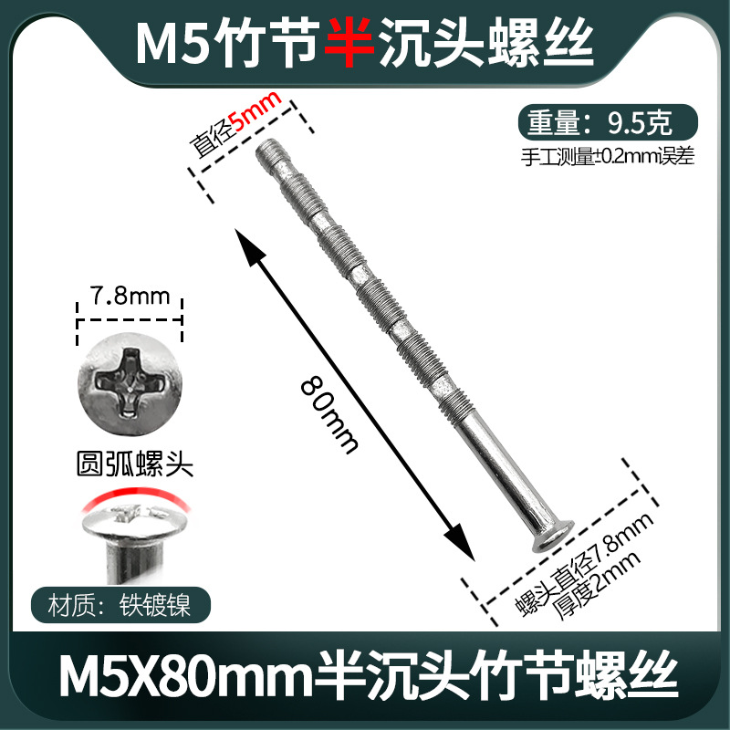 - Specification: M5X80 Semi-Countersunk Bamboo节螺丝