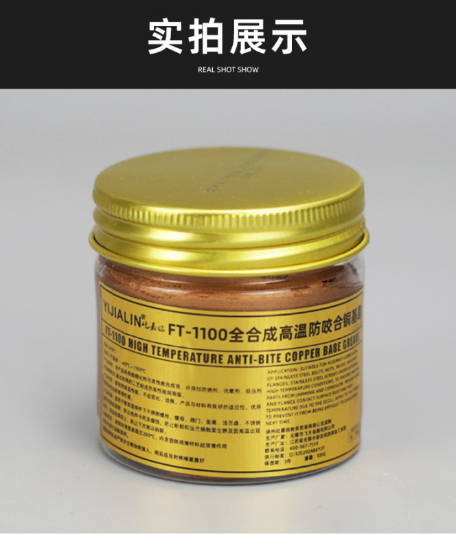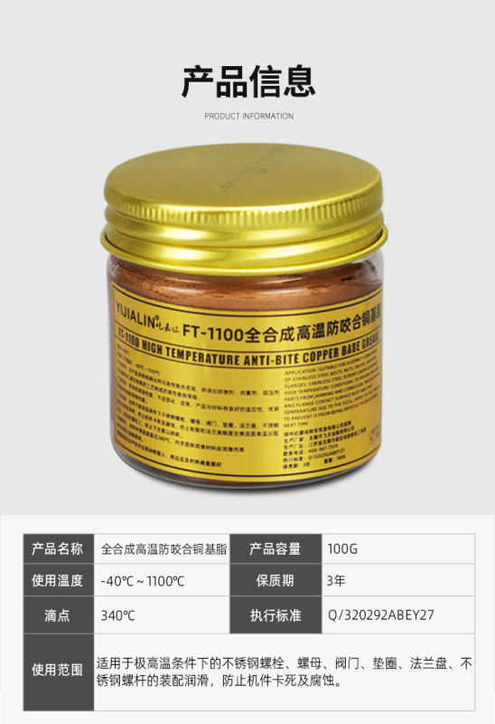 - Thickener type: High-temperature anti-seize copper-based grease