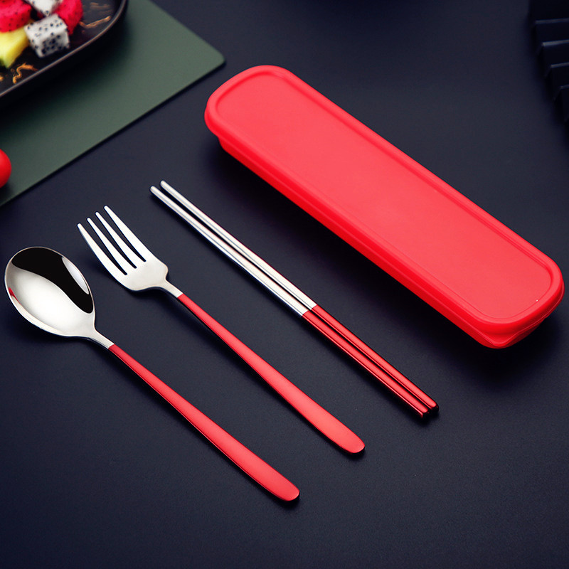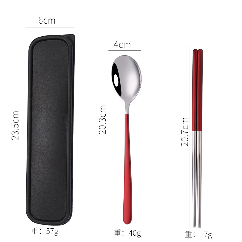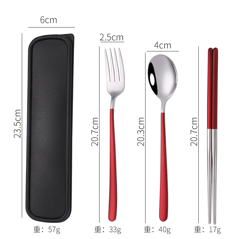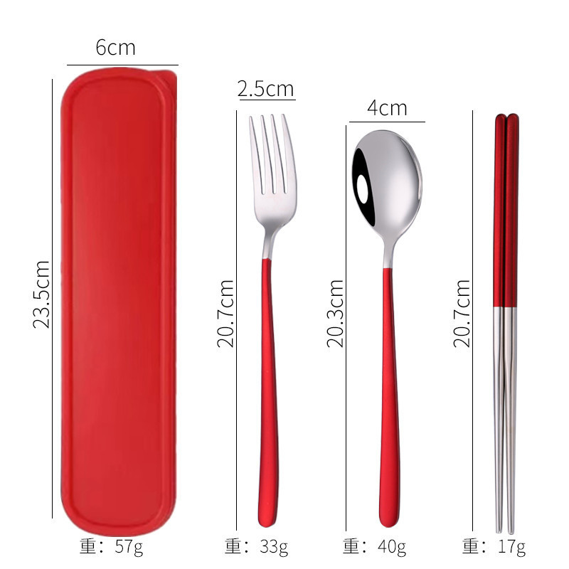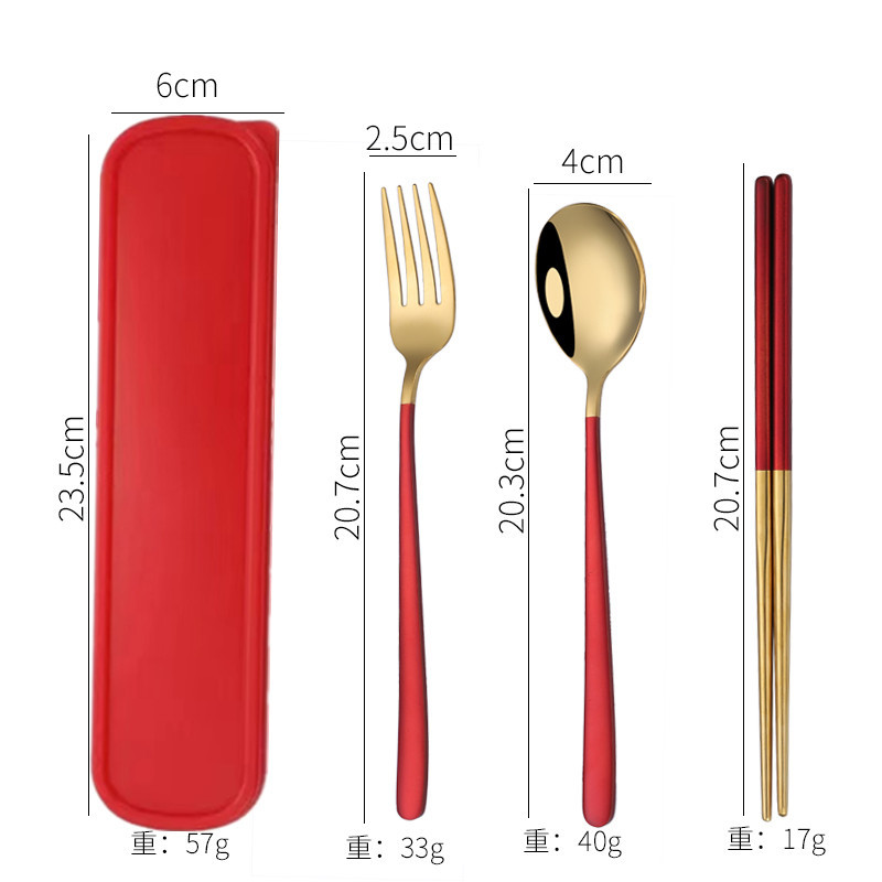 - Specification: [Red Wine + Silver] 304 spoon-fork-chopsticks 3-piece set + red box