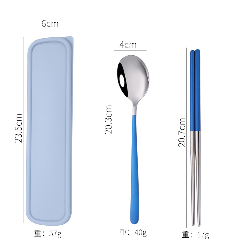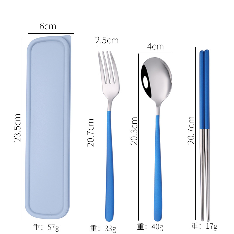 - Specification: [Blue + Silver] 304 spoon-fork-chopsticks 3-piece set + blue box