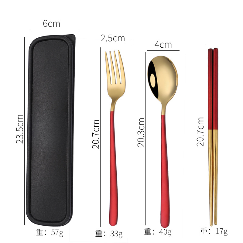 - Specification: [Red Wine + Gold] 304 spoon-fork-chopsticks 3-piece set + black box