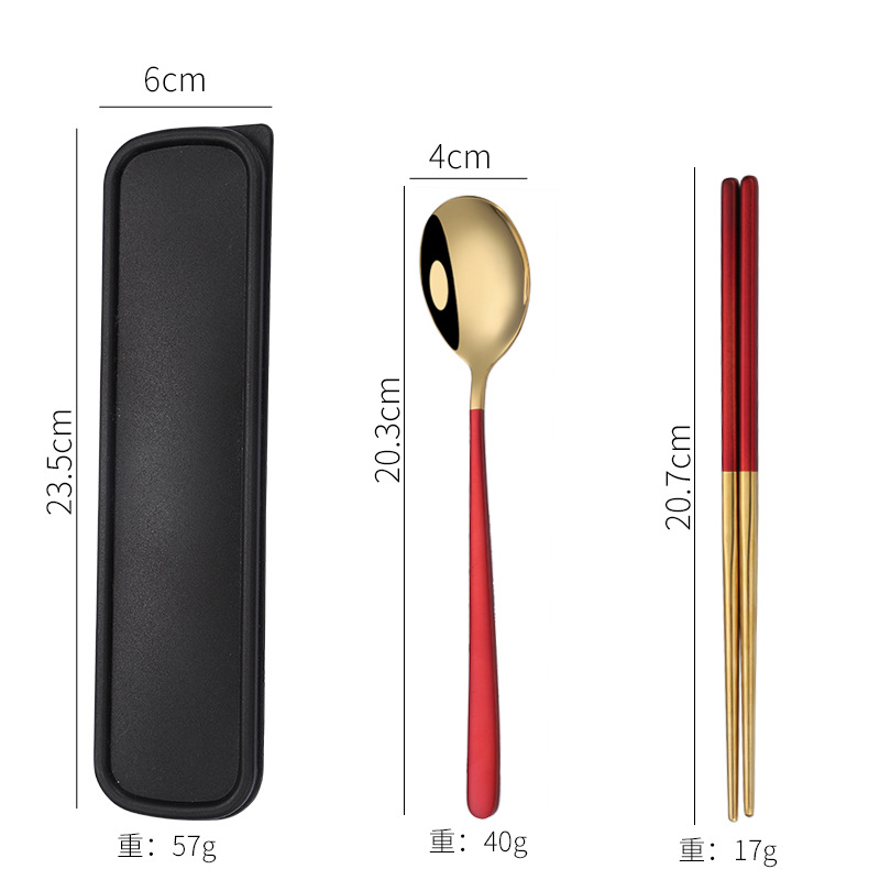 - Specification: [Red Wine + Gold] 304 spoon-chopsticks 2-piece set + black box