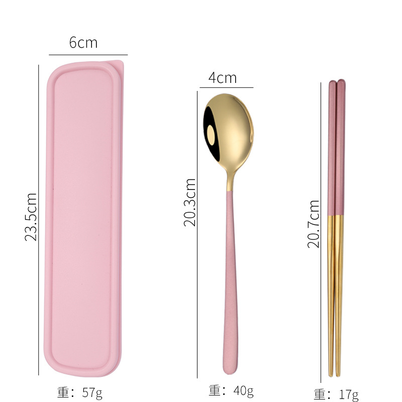 - Specification: [Pink + Gold] 304 spoon-chopsticks 2-piece set + pink box