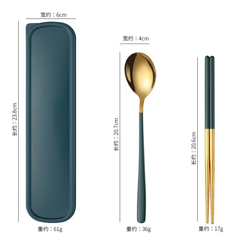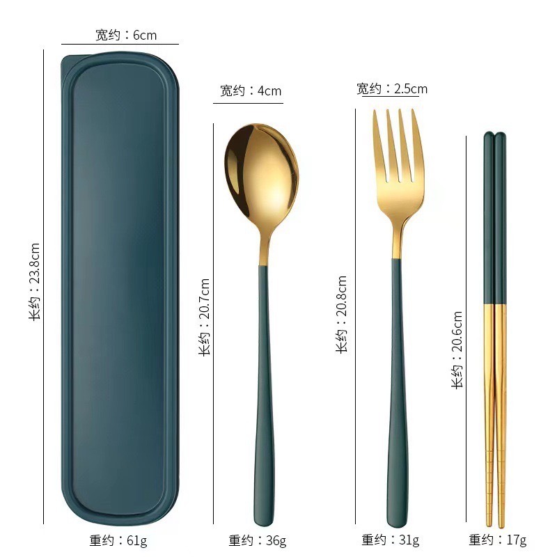 - Specification: [Dark Green + Gold] 410 spoon-fork-chopsticks 3-piece set + dark green box