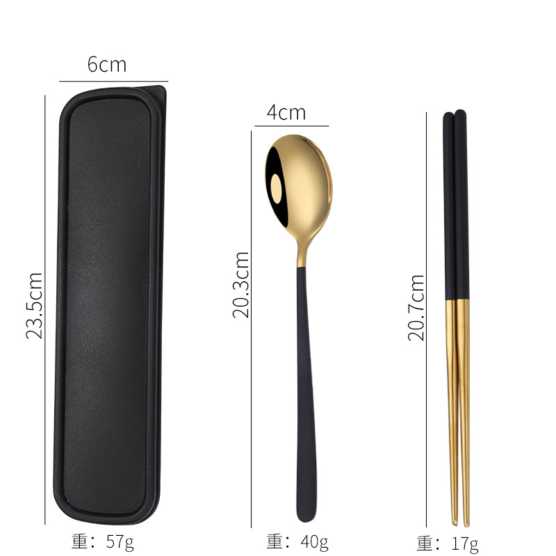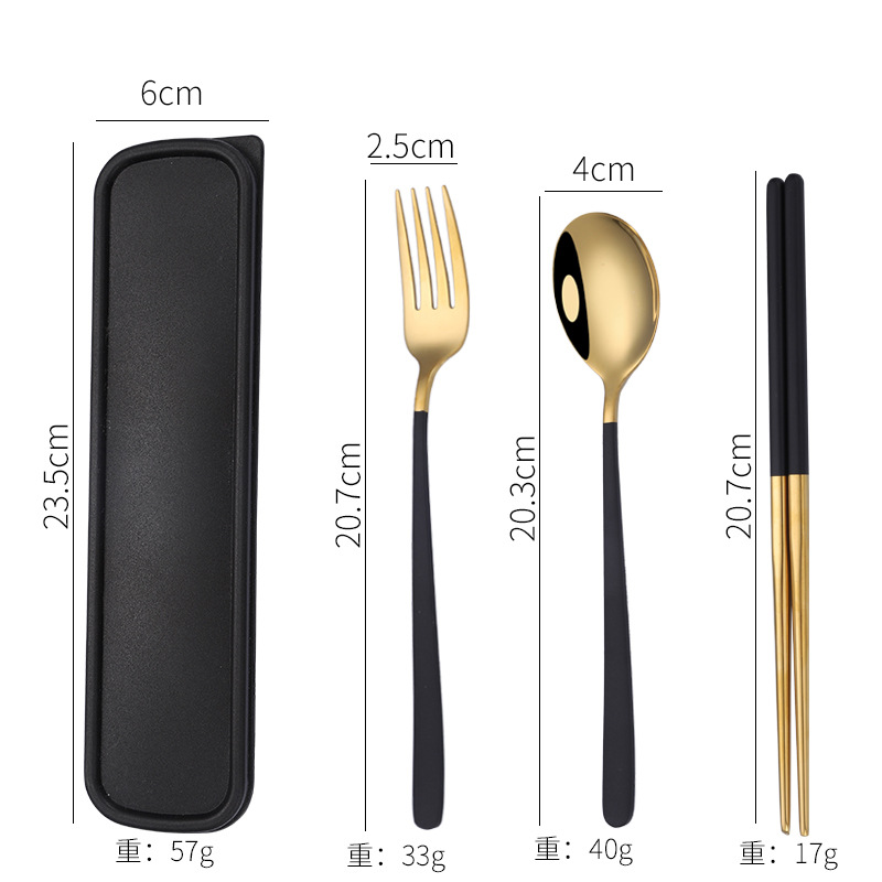 - Specification: [Black + Gold] 304 spoon-fork-chopsticks 3-piece set + black box