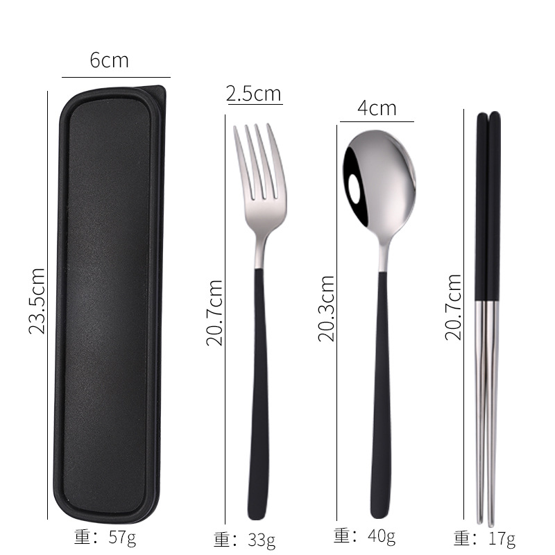 - Specification: [Black + Silver] 304 spoon-fork-chopsticks 3-piece set + black box