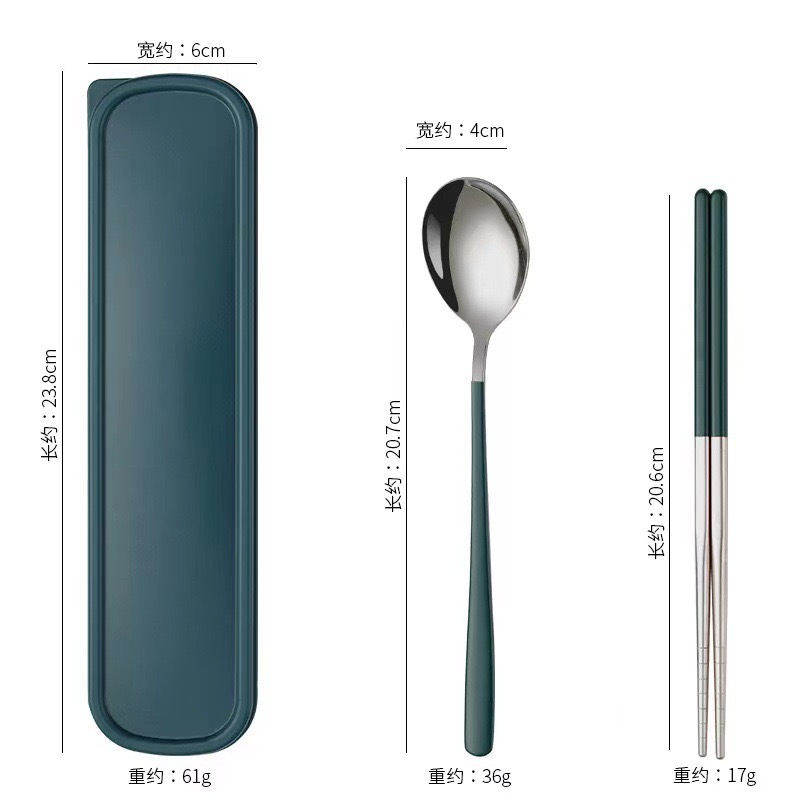 - Specification: [Dark Green + Silver] 304 spoon-chopsticks 2-piece set + dark green box