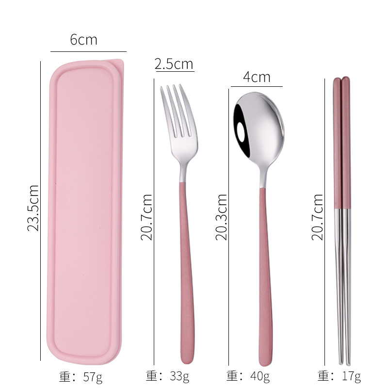 - Specification: [Pink + Silver] 304 spoon-fork-chopsticks 3-piece set + pink box