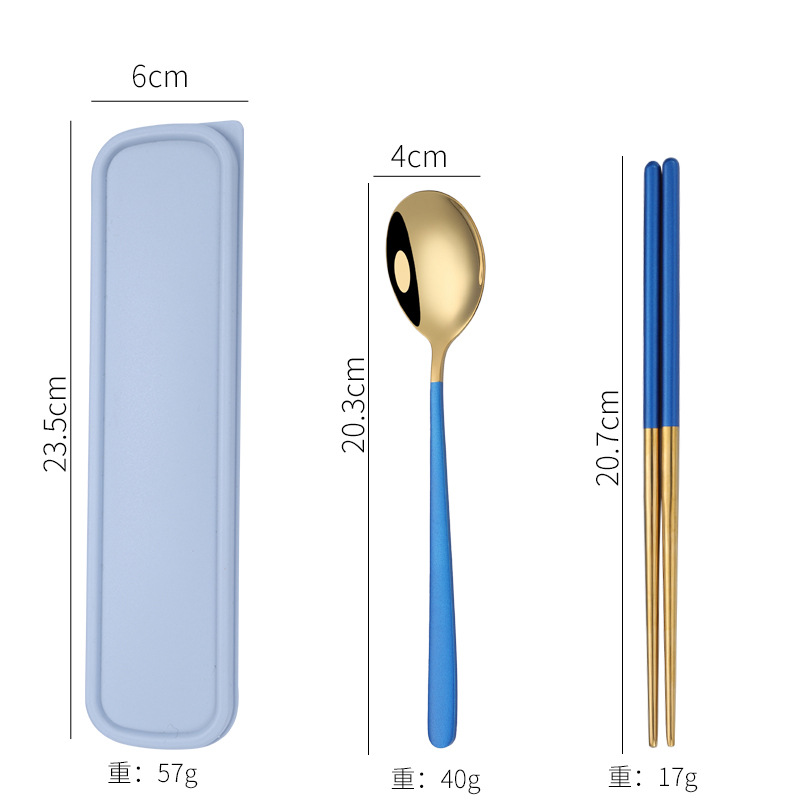 - Specification: [Blue + Gold] 410 spoon-fork-chopsticks 3-piece set + blue box