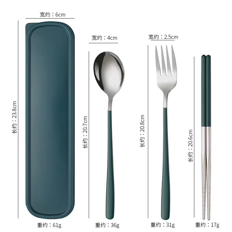 - Specification: [Dark Green + Silver] 410 spoon-fork-chopsticks 3-piece set + dark green box