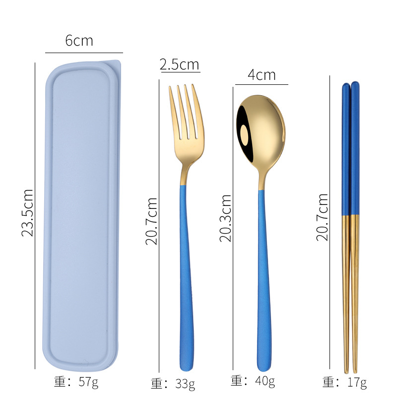 - Specification: [Blue + Gold] 304 spoon-fork-chopsticks 3-piece set + blue box