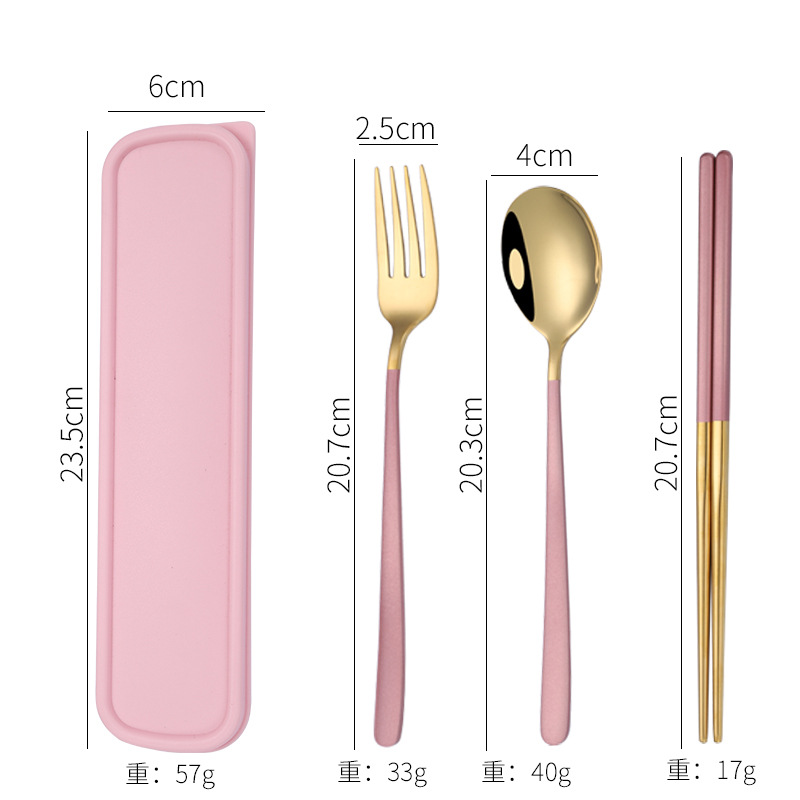 - Specification: [Pink + Gold] 304 spoon-fork-chopsticks 3-piece set + pink box