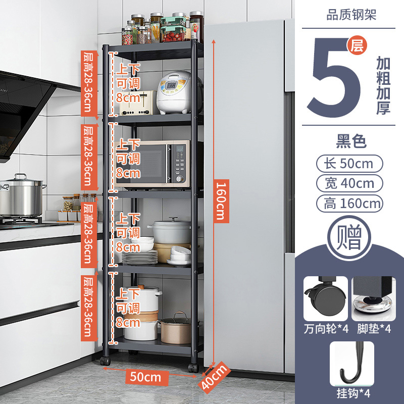 - Number of Layers (Specifications): 【Upgraded Rails】5 Layers, Length 50cm, Width 40cm, Height 160cm, Adjustable Layer Spacing