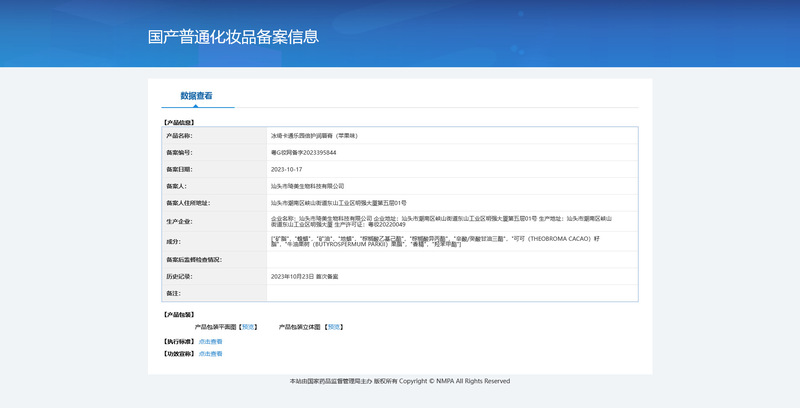 - Non-Special Use Cosmetic Filing Number: Yue G Zhuang Wang Bei Zi 2017000001