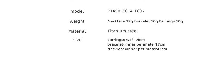 - Set combination: Earrings + Necklace + Bracelet