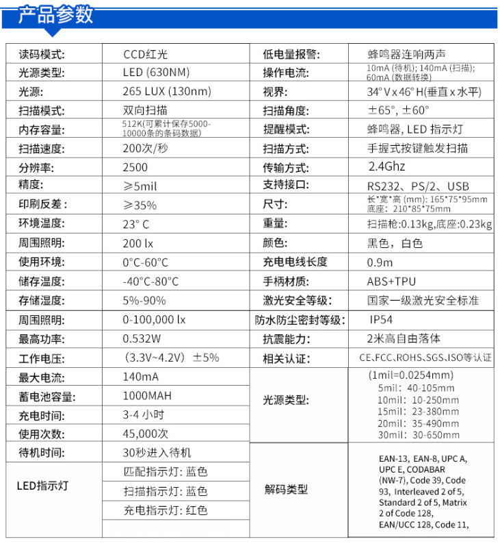 - 型號:一維無線掃碼槍