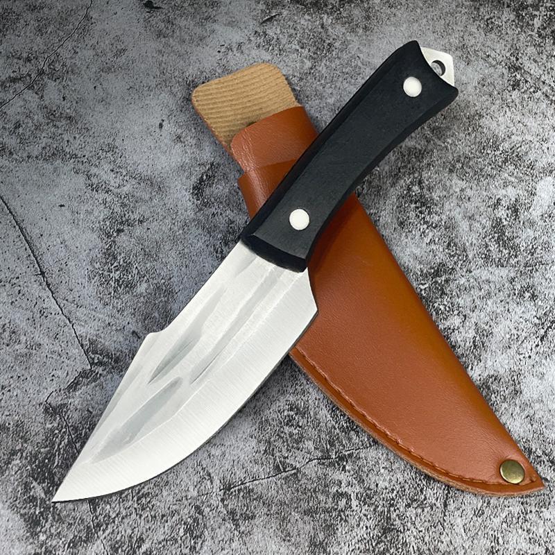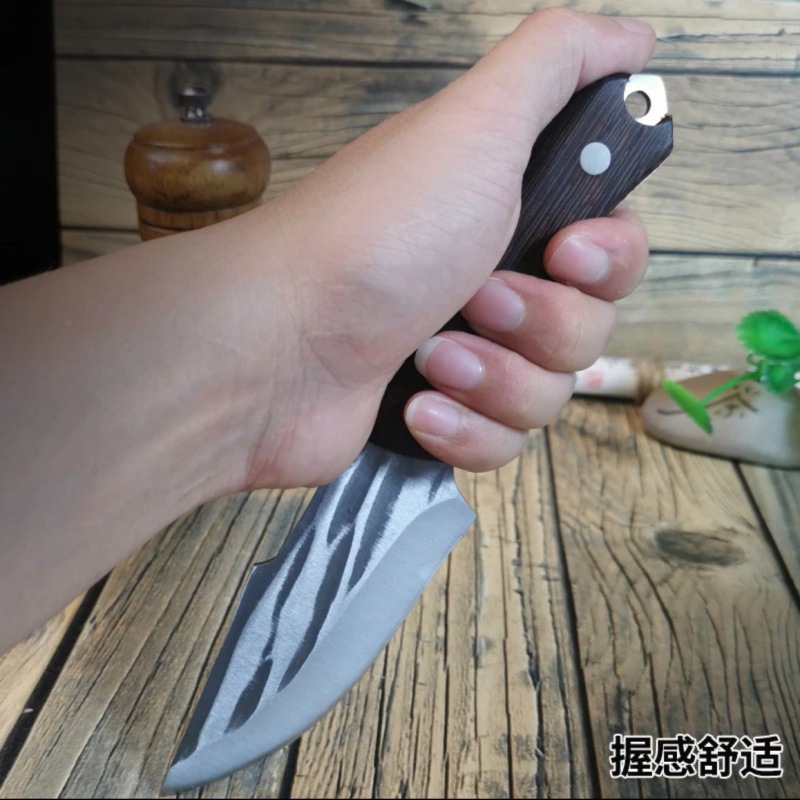 - Specification: Black wooden handle hammered knife + sheath