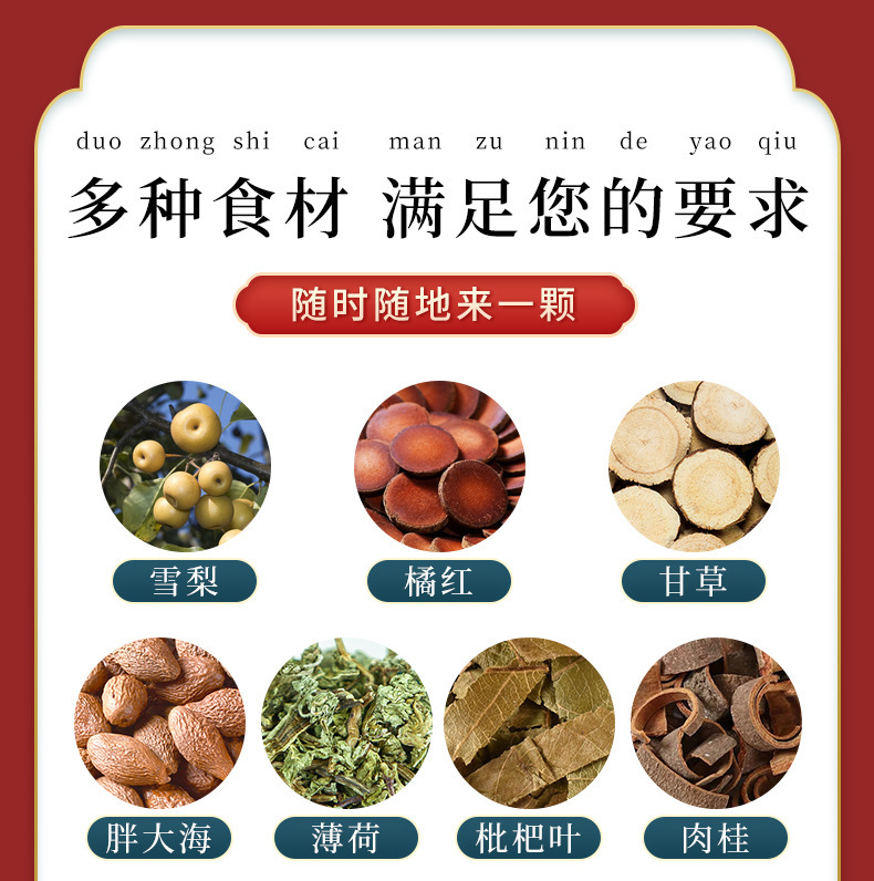- Ingredients and Components: Pear, Monk Fruit, Licorice, Ephedra, Mint, etc.