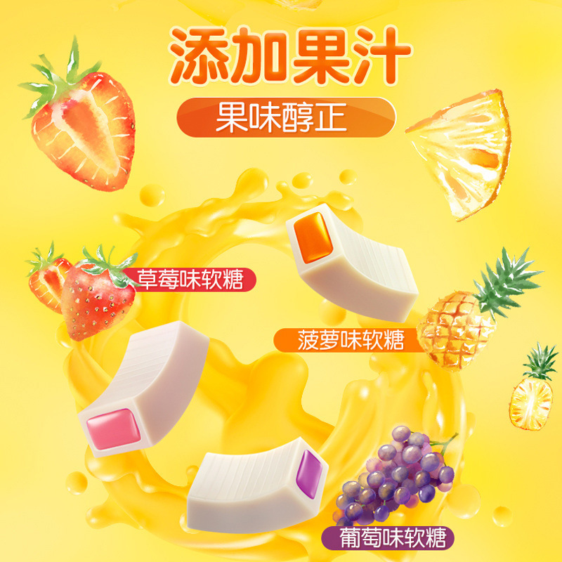 - Ingredients and Compositions: Malt Sugar, White Sugar, Hydrogenated Vegetable Oil, Food Additives, Concentrated Fruit Juice, etc.