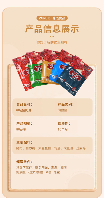- Packaging size: 80g five-spice pork jerky
