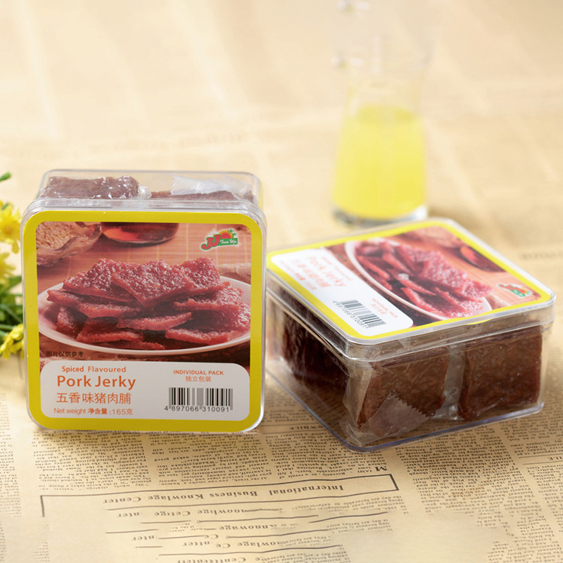 - Packaging specification: 165g five-spice-flavored pork jerky