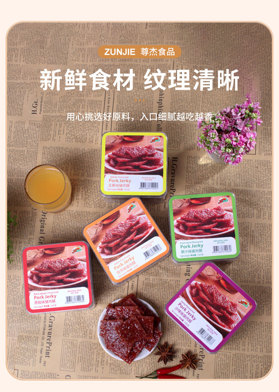 - Packaging specification: 165g black pepper-flavored pork jerky