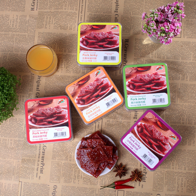 - Packaging specification: 165g juice-flavored pork jerky