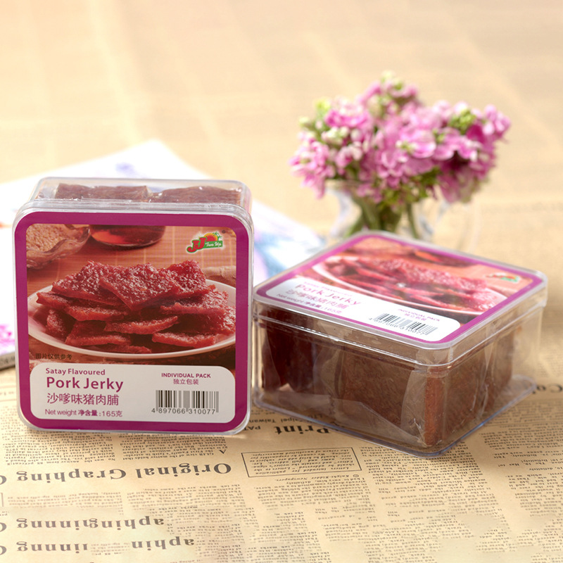 - Packaging specification: 165g satay-flavored pork jerky