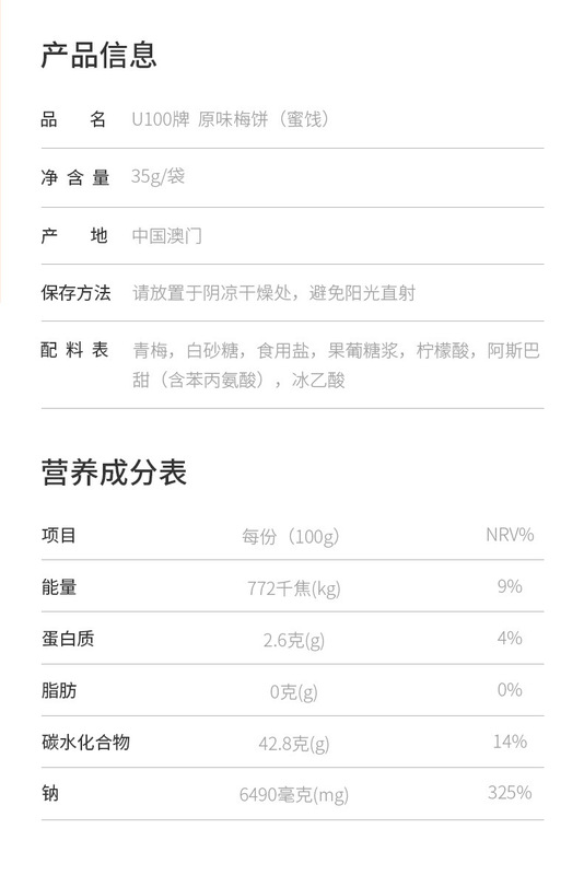 - Packaging Specification: Tangerine Peel-flavored Plum Cake 35g