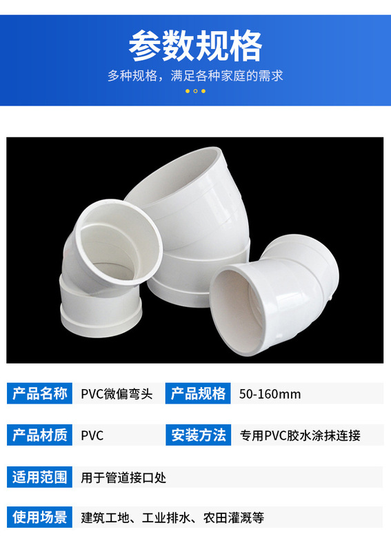 - Product Specification: 50-22.5 degree micro-deviated elbow (420 pcs/box)