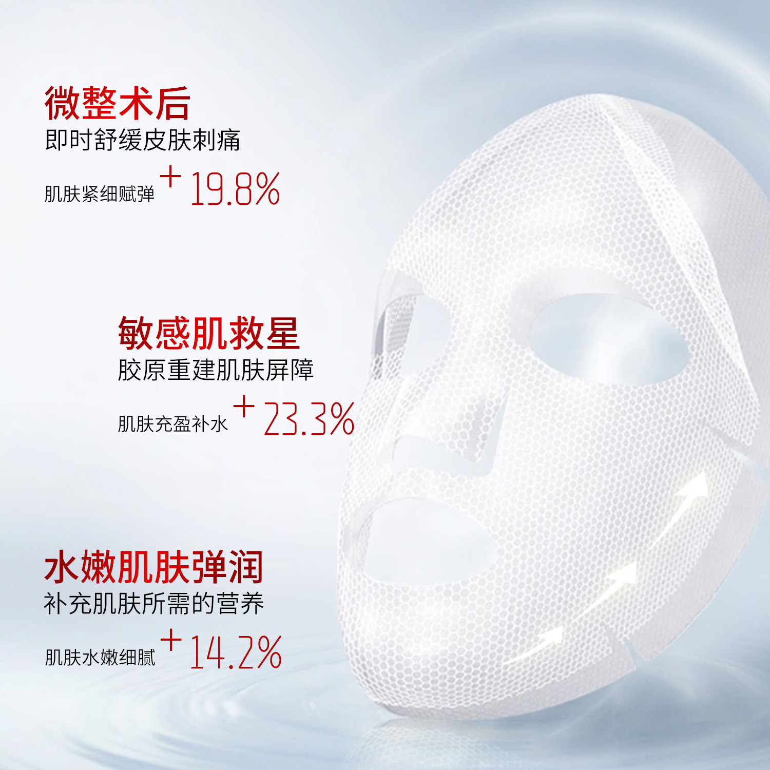 - Function: Repair, Hydration, Sensitive Skin, Post-Medical Procedures, Facial Swelling