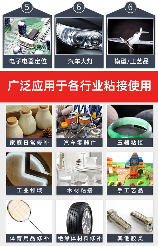 - Application range: Adhering to various metal, plastic, stone, ceramic, glass, and acrylic materials
