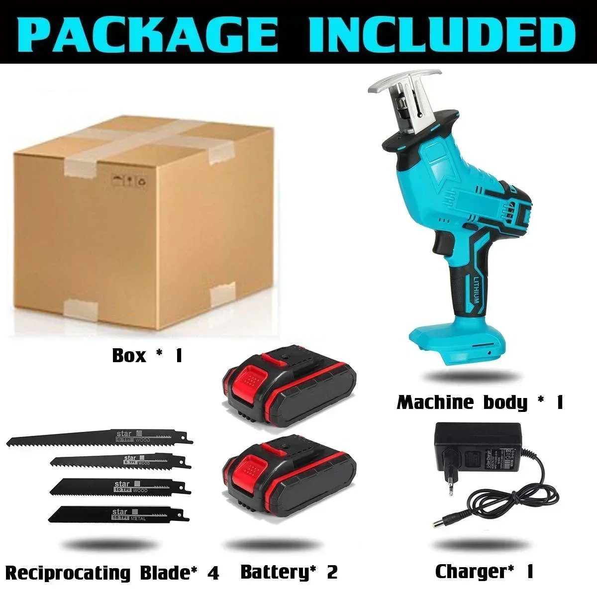 - Standard Accessories: 4 Saw Blades, Plastic Box