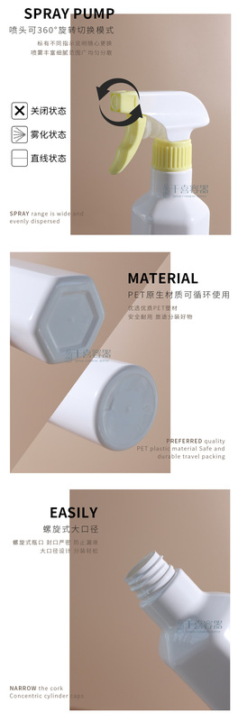 - Model Specification: 500ml; Light Yellow Hexagonal Spray Bottle; PET