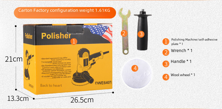 - 規格型號:黃色拋光機(標配套)彩盒*4500*125*汽車拋光機