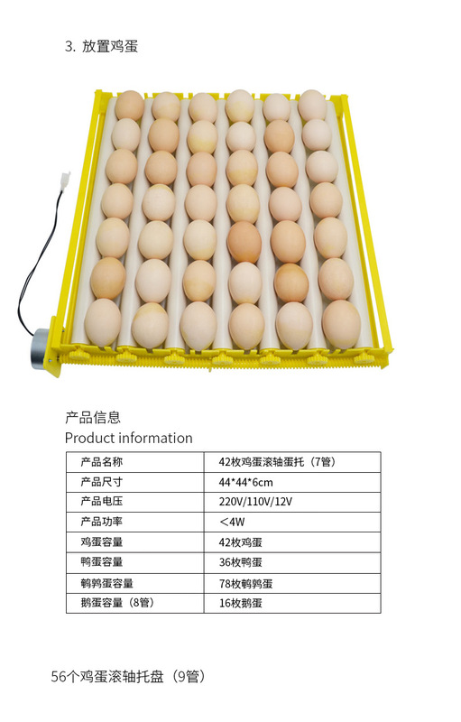 - Product specifications: 42 yellow roller egg trays AC 220V (7 tubes)