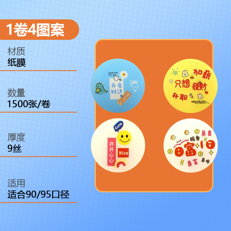 - 規格:紙膜開心好運4圖一卷1500張