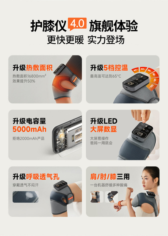 - Product Selling Point: Kefei Smart Knee Protection Device ☞ Multi-purpose, allowing parents to enjoy massage for 3 major joints and 4 heating technologies at home, saving parents from cold and arthritic legs『Sufficient Heat"