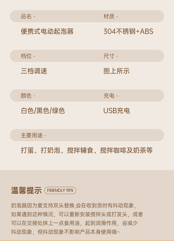 - Function: Egg beater, milk frother, mixer
