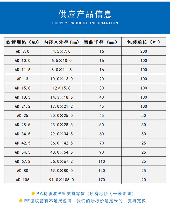 - Nominal Outer Diameter: Thickened PEAD21.2 inner diameter x outer diameter (17×21.2mm)