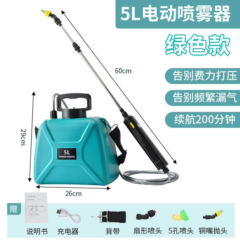- Specification: 5L Shoulder-mounted Electric Sprayer (Green)