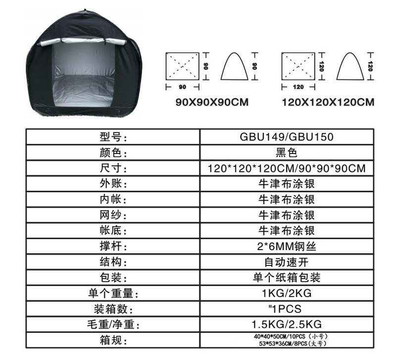- 帳篷展開大小:78*78*88;90*90*90;120*120*120