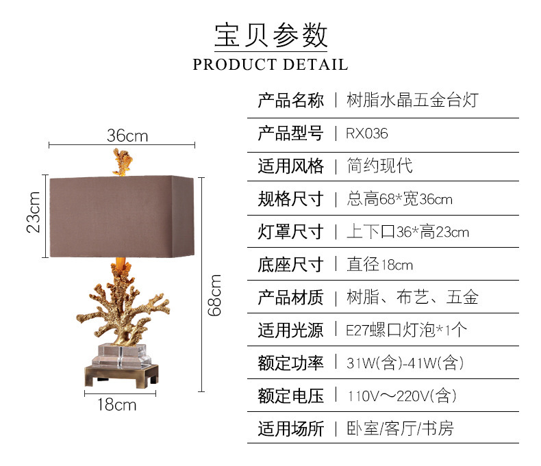 - Lamp base material: Crystal