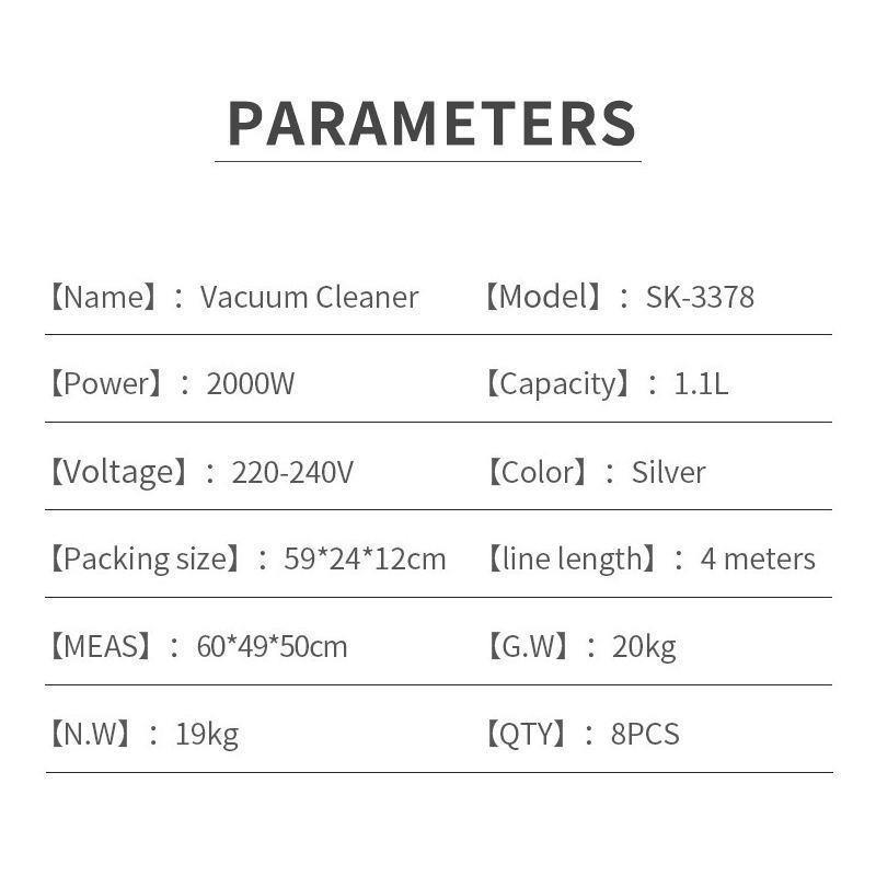 - Product Specifications: 3378 Vacuum Cleaner