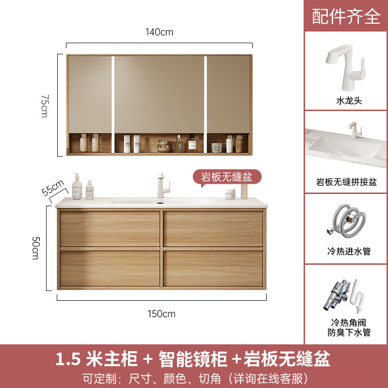 - 規格:150CM岩板無縫陶瓷盆+智能鏡櫃