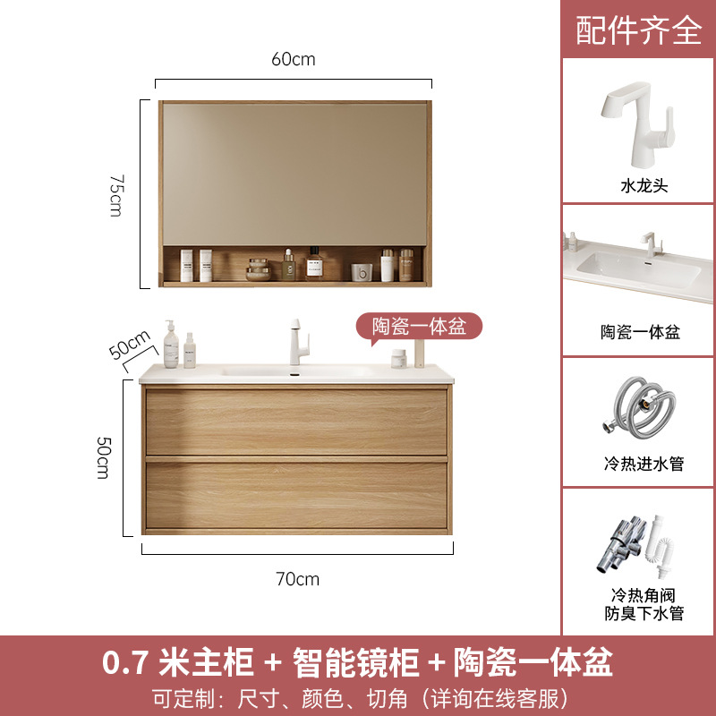 - 規格:70CM陶瓷一體盆+智能鏡櫃