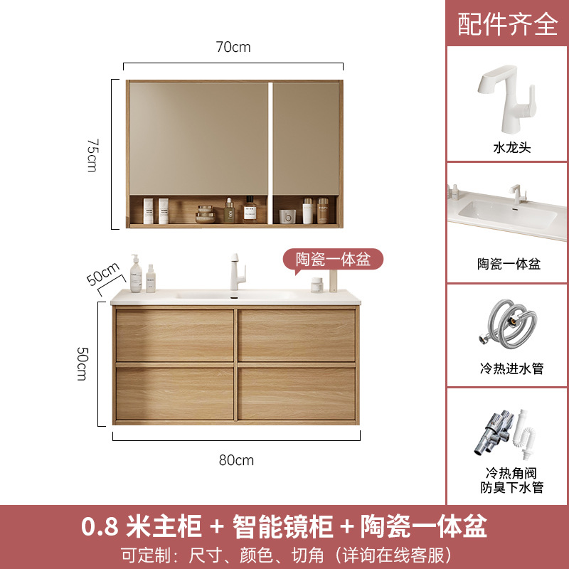 - 規格:80CM陶瓷一體盆+智能鏡櫃
