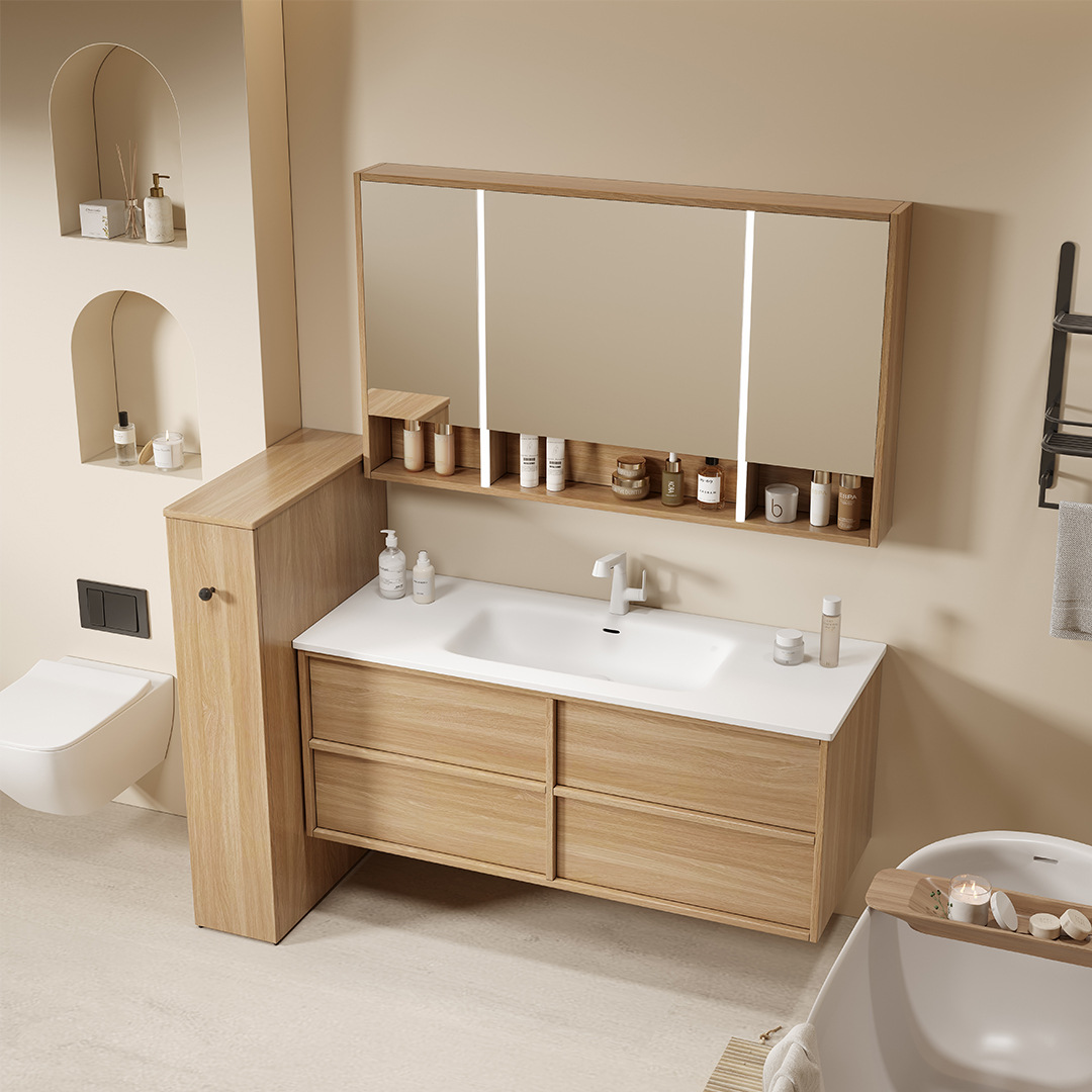 - 規格:120CM陶瓷一體盆+智能鏡櫃